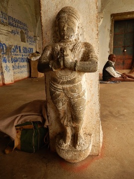 Indian tradition mandates that every Indian should welcome guests and treat them as demi gods— athithi devo ba vaha. This was extended to the travellers by philanthropists and also by the ancient administrations too. Various kings and nobles had built shelters in the form of pillared halls (mandapam) with a kitchen and a water point. One such structure still exists intact and was probably constructed by Naiker rulers. The Naikers are usually portrayed in the standing posture with folded hands often accompanied by their spouses. It is interesting to note the type of dress, different kinds of hair styles and the accessories in these stone carvings.