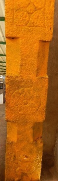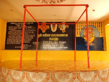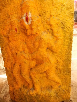 The stairway leading to the temple; halfway through, a four pillared mandapam is located .The pillars contain engraved figurines viz. human, animal and floral designs.