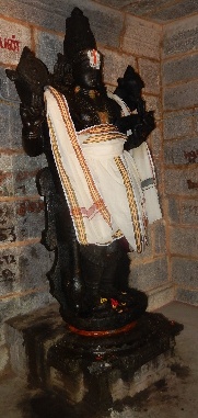 The temple is to the east of the village and has a renovated compound. The main entrance is a 7-tiered structure. Near the entrance, is the Garudalvar shrine where the majestic bird deity is seen in padmasanam with yoga mudra; a snake is depicted on left hand with its hood raised over the thigh. Padra kundalam adorns the ear - this form of sculpturing indicates that it belongs to the Naiker period.