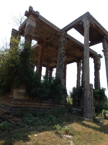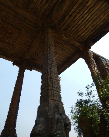 About 15 metres from the temple facing the entrance is the swing chamber - open on all sides, but crumbling. The structure is a wonder with various engraved sculptures. The entire granite structure is nearly 15 mts. in height.
