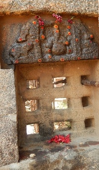 A granite window with Lord Ganapathy portrayed
