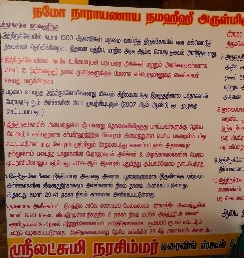 The Lakshmi Narasimhar Sanskrit slogam written in Tamil as Tamil literation.