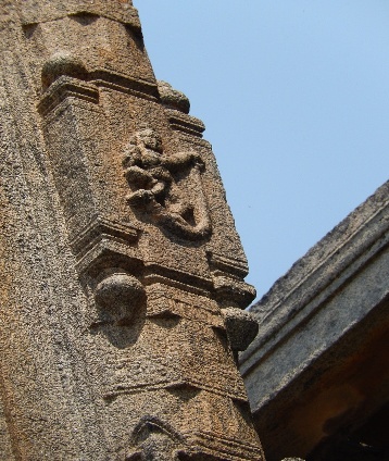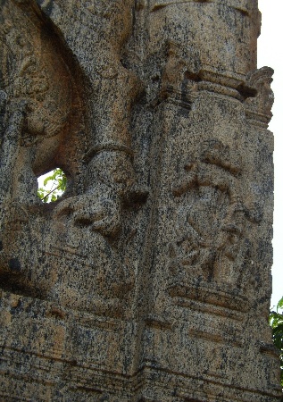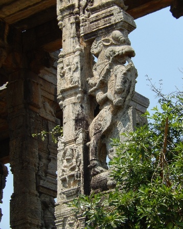About 15 metres from the temple facing the entrance is the swing chamber - open on all sides, but crumbling. The structure is a wonder with various engraved sculptures. The entire granite structure is nearly 15 mts. in height.