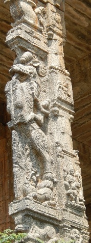 The pillars are actually kept in a position of grate balancing act. Each pillar contains innumerable sculptures and figurines depicting stories and short anecdotes, etc. in their own way. The pillars are similar to the later Chola period. Most of the pillars have a yalisculpted on them. A yali, also known as Vyala or Vidala in Sanskri, is a mythical creature often portrayed as part lion, part elephant and part horse, and in similar shapes. Also, it has been sometimes described as a leogryph (part lion and part griffin with some bird-like features). Some even say it morphed into the dragon which is popular in Chinese mythology.